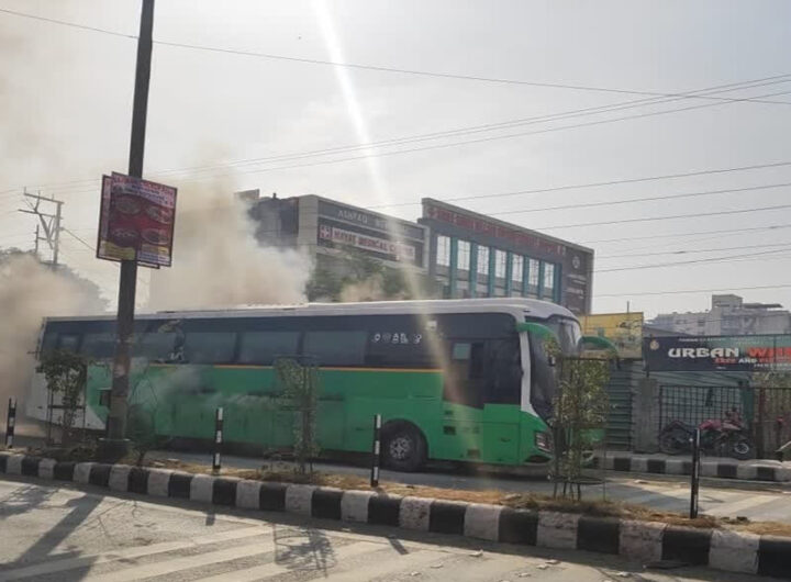 तमिलनाडु से भ्रमण पर देहरादून आए स्कूली बच्चों की वातानुकूलित इलेक्ट्रिक बस में शिमला बाईपास स्थित सेंट...